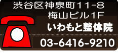 院名 神泉カイロプラクティック いわもと整体院 住所 〒150-0045 東京都渋谷区神泉町11-8梅山ビル1F 営業時間 【平日】10:00~20:00